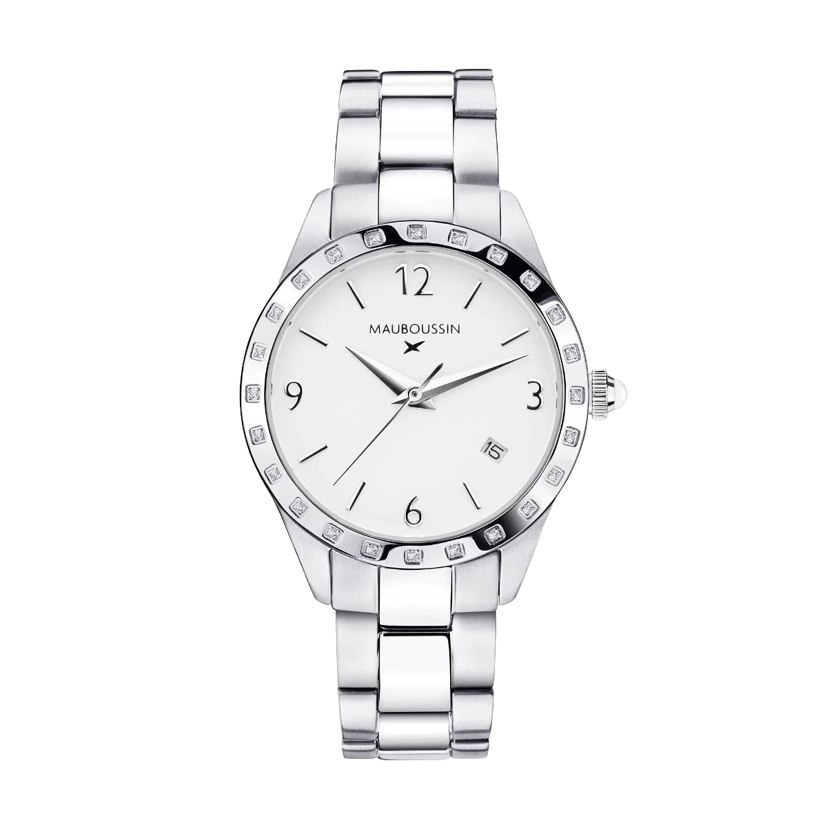Il est Grand Temps watch, steel, white dial, diamonds, steel bracelet